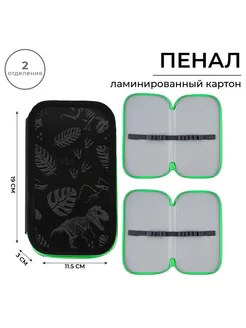 Пенал школьный 2 секции 190 х 105 лам.кар «Динозавр»