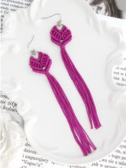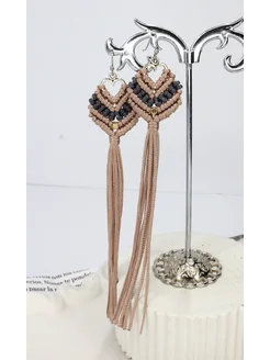 Длинные плетёные серьги кисточки макраме