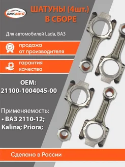 Шатуны в сборе 4 шт ВАЗ 2110-2112 Лада Калина Приора
