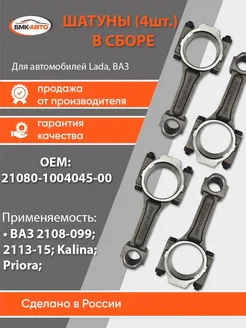 Шатуны в сборе 4 шт ВАЗ 2108-2115 Лада Калина Приора