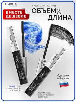 Туши для ресниц синяя и черная, силиконовая щеточка