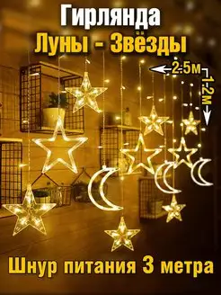 Гирлянда звезды и луна на окно стену