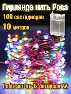 Гирлянда на батарейках новогодняя елку нить роса 10 метров
