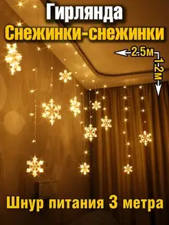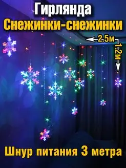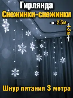 Гирлянда на окно стену занавес снежинки