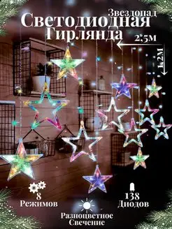 Гирлянда Звезды штора занавес на окно