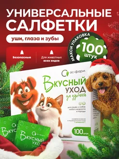Влажные салфетки для зубов собак, для ушей и глаз, 100 штук