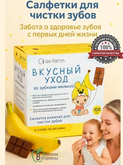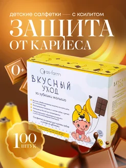 Детские влажные салфетки с ксилитом от кариеса, 100 шт, бана…