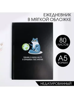 Ежедневник в тонкой обложке "Котик" А5, 80 листов