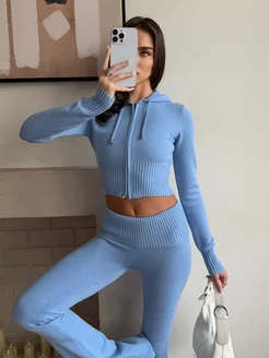 Вязаный костюм осенний зимний с отворотом на штанах клеш