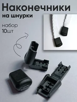Наконечники зажимы для шнурков черные 10 шт