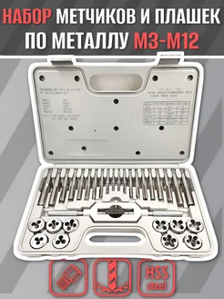 Набор метчиков и плашек (лерки) по металлу М3-М12 31 предм