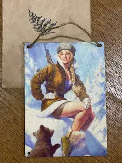 Стильная деревянная открытка "Блондинка в форме" в подарочно…