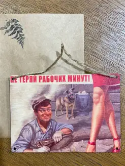 Стильная деревянная открытка "Не теряй минут" в подарочном к…