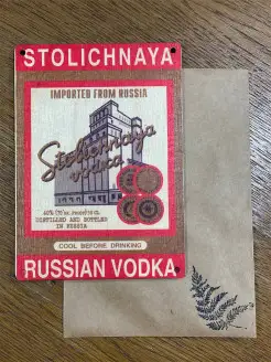 Стильная деревянная открытка "Столичная водка" в подарочном…