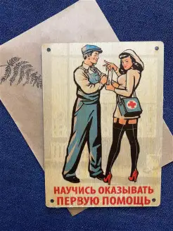 Стильная деревянная открытка "Первая помощь" в подарочном ко…