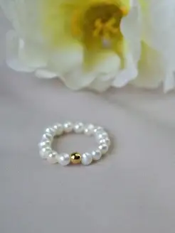 Кольцо с натуральным жемчугом на эластичной резинке