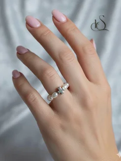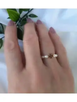 Кольцо с натуральным жемчугом и Клевером на удачу