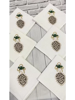 Салфетки льняные 6шт. сервировочные Новогодние "Шишка"