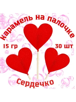 Леденцы на палочке сердечки,вкус клубники 30 шт, 15 гр