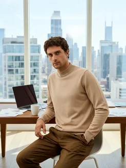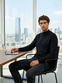 Водолазка с горлом теплая из хлопка