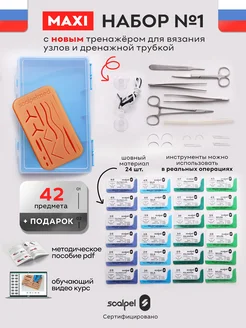 Хирургический набор №1 с тренажером и инструментами