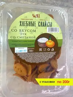 Сухари Хлебные слайсы вкус "Лук со сметаной", 3 шт по 200 г