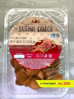Сухари Хлебные слайсы вкус "Буженина", 3 шт по 200 г
