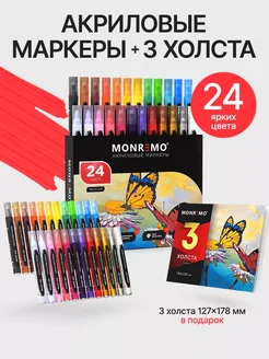 Акриловые маркеры и холсты для рисования, 24 цвета