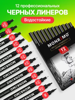 Линеры для рисования черные водостойкие, 12 шт