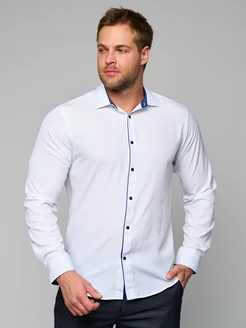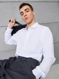 Классическая белая мужская рубашка полуприлегающего силуэта