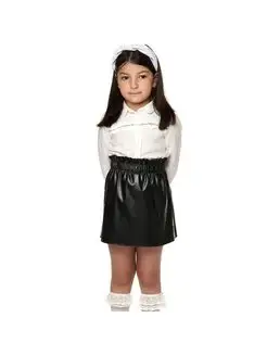Юбка школьная праздничная новогодняя кожаная с гипюром