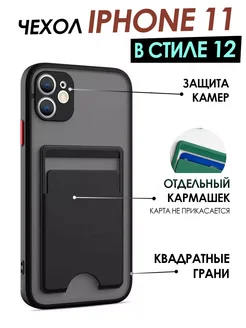Чехол iPhone 11 с картхолдером прозрачный с защитой камеры