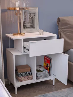 Тумба прикроватная Нордик 60х32х73 см белая, с полками