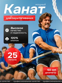 Канат для перетягивания х б белый, D-50 мм, 25 метров