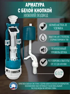 Арматура для унитаза с нижней подводкой белая кнопка
