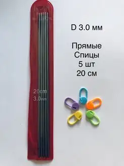 Спицы прямые 5 штук, длина 20 см для вязания 3 мм