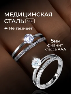 Двойное кольцо с фианитами