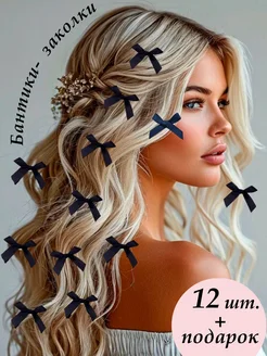 Маленькие атласные бантики на заколке для волос, 12 шт