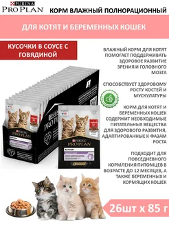 Влажный корм для котят с говядиной в соусе 85 гx26 шт