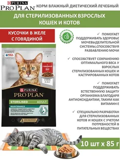 Корм влажный для кошек стерилизованных с говядиной в желе 85…