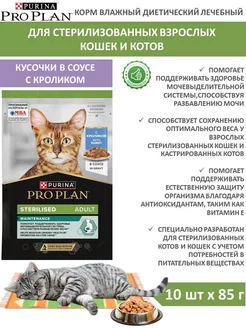 Корм для кошек стерилизованных с кроликом в соусе 85 г x 10…