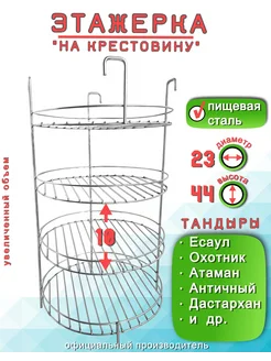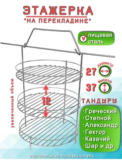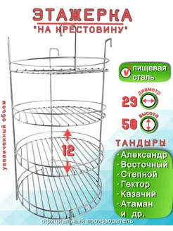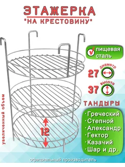 Этажерка решетка для Тандыра 3 яруса D23 см, крестовина борт
