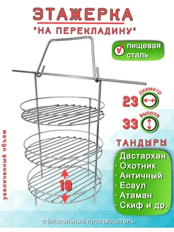 Этажерка для Тандыра 3 яруса D23 см, на перекладине с бортом