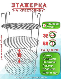 Этажерка решетка для Тандыра 4 яруса D27 см, крестовина борт