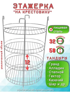 Этажерка решетка для Тандыра 3 яруса D27 см, крестовина борт