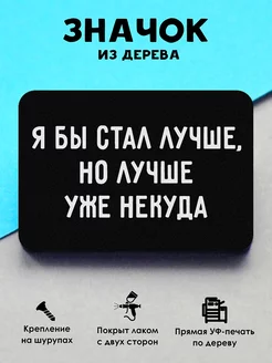 Прикольный деревянный значок на рюкзак Лучше некуда