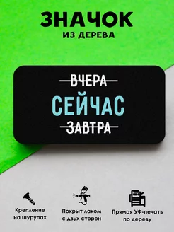 Прикольный деревянный значок на рюкзак Сейчас