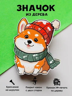 Значок новогодний Корги в шапке