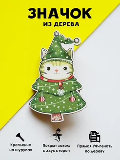Значок новогодний на рюкзак Кот-елка