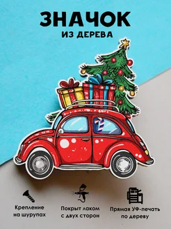 Значок новогодний на рюкзак Красная машина